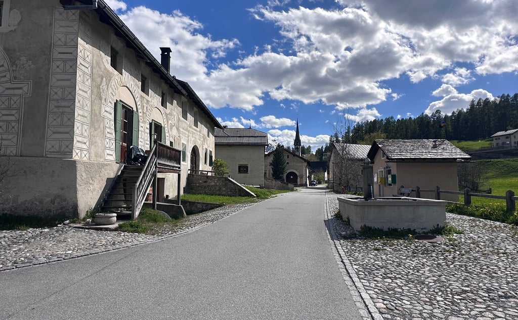 Cinuos-chel is a small village located near the point where the Upper and Lower Engadin meet. It lies on a meadow plateau above a rocky gorge. Although it has often been overlooked and mainly linked to the history of nearby S-chanf, its cultural and historical importance has gained more recognition in recent times. In fact, Cinuos-chel has preserved its traditional village layout remarkably well and has even been described as a place with houses of rare beauty.