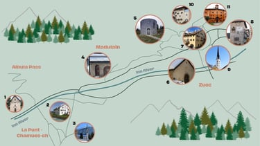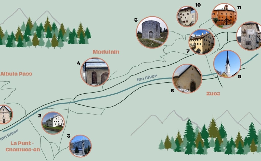 A pleasant and relaxing stroll through the well-preserved village centers of La Punt-Chamues-ch, Madulain, and Zuoz. This tour offers the opportunity to explore the highlights of these historic towns. The unique landscape provides a breathtaking backdrop for a rich and complex history, shaped by centuries of cultural exchange.